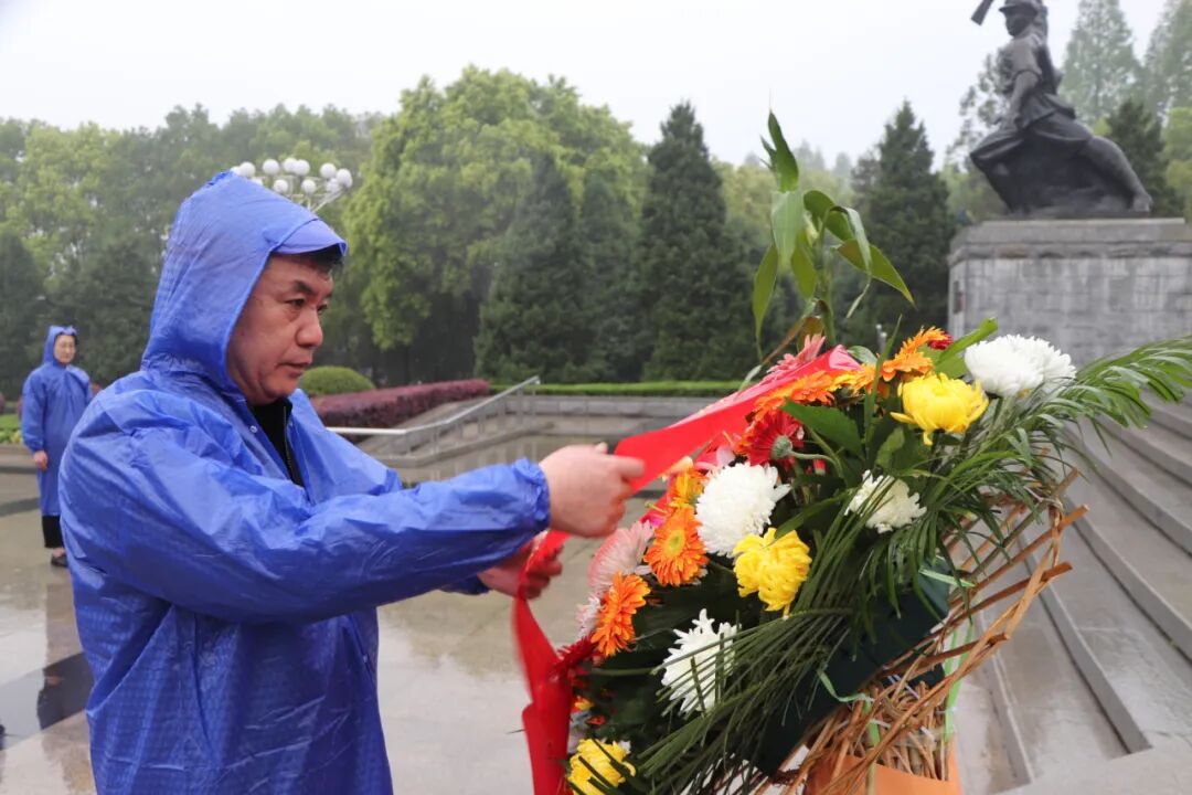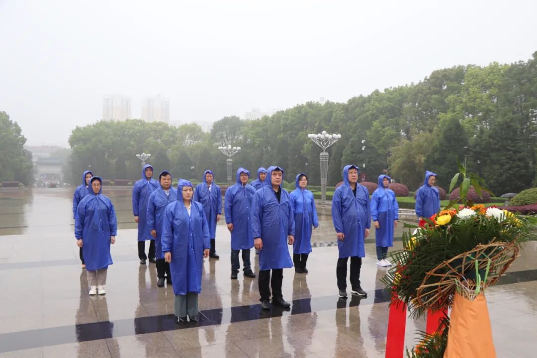 13日上午,考察组一行在微微细雨中来到黄麻起义和鄂豫皖苏区纪念园进行党建活动。在巍然耸立的革命烈士纪念碑前,陈积春向革命先烈整理缎带、鞠躬行礼,表达对革命先烈深切的怀念和崇高的敬意。