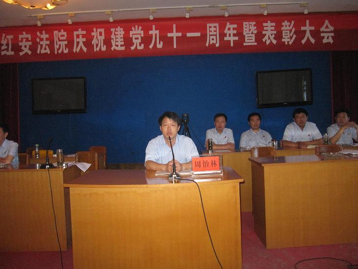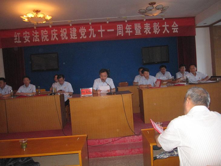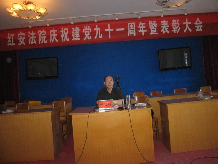 6月27日上午,我院隆重举行庆祝中国共产党建党91周年暨表彰大会,党组书记、院长黄明律在会上作重要讲话,党组成员、副院长姜先锋主持会议,省高院党组成员、纪检组长柯文胜做廉政教育专题讲座,县直工委副书记周怡林出席会议,全体干警参加会议。
