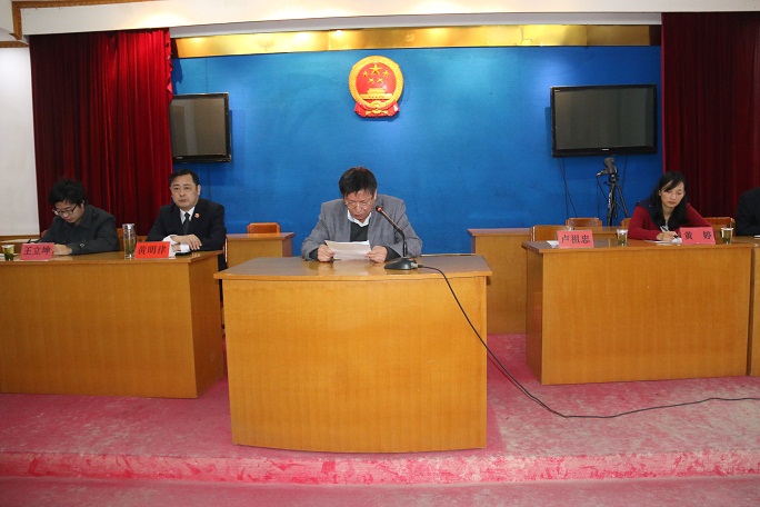 10月29日上午,我院召开党的群众路线教育实践活动总结暨争当“两为”好干部动员大会。县委第十二督导组组长卢祖忠到会指导并作重要讲话,党组书记、院长黄明律作总结报告,党组副书记、副院长姜先锋主持大会,领导班子成员、全院干警参加会议。