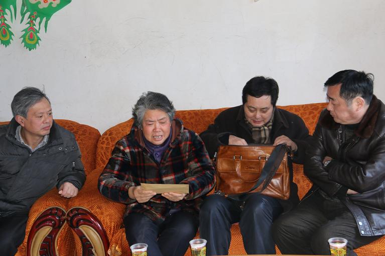 市中院和我院也分别给予了慰问金,领导们的看望慰问使彭芳兰同志感动得热泪盈眶。她说:“老阮出事后,院领导和同事们一直给予我很大的关心、帮助、支持和照顾,使我能够支撑住,渡过难关。今天,三级法院的领导在繁忙的工作中还来看望我们,让我再次感受法院这个大家庭的温暖和领导们对我家的关怀,我一定坚定信心,克服困难,继续照顾好老阮。”