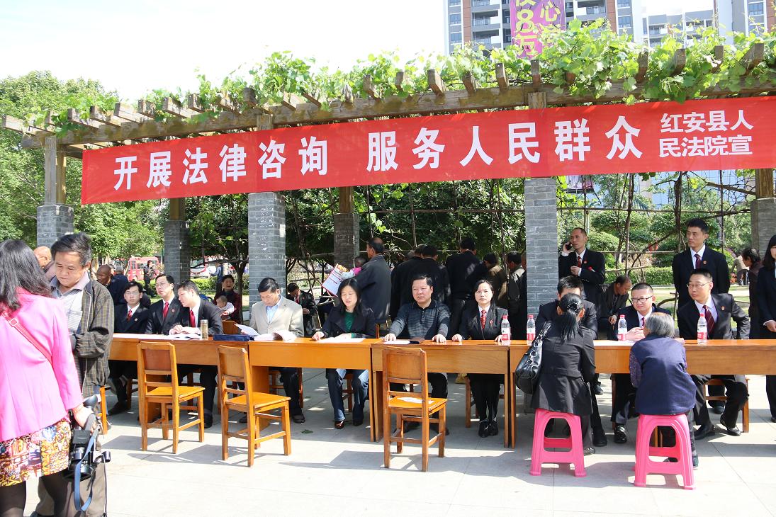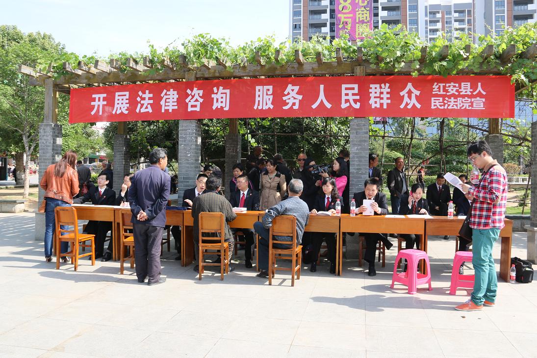 为切实践行党的群众路线教育实践活动,5月5日上午,我院党组副书记杨慧芳,党组成员、政治处主任杨辉友,工会主席王复桥率领青年干警来到我县天舒广场,开展法律咨询活动,拉开了我院法治惠民活动的序幕。 活动中,法官们对群众咨询的劳动争议、相邻纠纷、婚姻家庭等与自身生活密切相关的涉法问题,一一进行了耐心细致的解答。法官们的热情服务,吸引众多群众驻足旁听。 活动共向过往群众发放人民法院诉讼须知、诉讼风险提示书等诉讼法律知识宣传材料400余份,提供法律知识咨询50余人次,受到人民群众的欢迎。按照《红安县人民法院党的群众路线教育实践活动实施方案》的规定,我院还将举行一系列普法活动,让更多人民群众知法、懂法、守法。