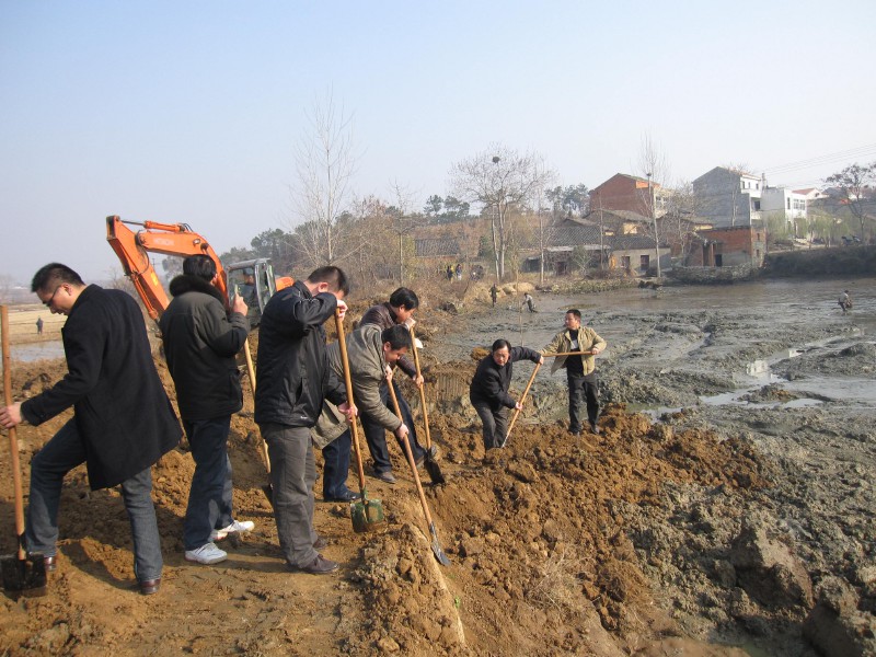 2011年12月18日,我院党组书记、院长黄明律,党组成员、副院长李国彬,党组成员、执行局局长颜俊吉带领部分干警,深入高桥镇二房湾村、夏家湾村,开展“万名干部进万村挖万塘”活动,帮助两村整治病险塘库,为来年农业生产打好基础。
