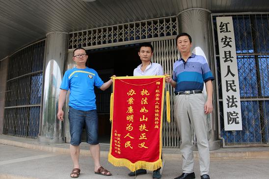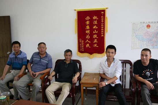 6月19日,一起交通事故损害赔偿纠纷案件的当事人王某某来到我院,向执行一庭法官赠送“执法如山扶正义,办案廉明为人民”的锦旗。?xml:namespace>?xml:namespace> 2012年7月,王某某在一起交通事故中被吴某某聘请的司机撞成重伤,我院对该案审理后作出判决:吴某某赔偿王某某超出机动车交通事故责任强制保险限额范围的经济损失34817.61元。判决生效后,被告吴某某向黄冈市中级人民法院提起上诉,二审期间,吴某某因与王某某达成和解协议而撤回上诉。此后,王某某多次找吴某某兑现判决,但吴某某拒不支付赔偿金。无奈之下,王某某只好向法院申请强制执行。立案后,承办法官多次组织双方当事人调解,从情、理、法的角度对被申请人吴某某进行了说服,最终双方当事人握手言和,达成了调解协议,由吴某某当庭一次性给付王某某27000元,余款王某某自愿放弃。 至此,这起交通事故案终于划上了圆满的句号。为感谢我院执行法官,王某某特意制作了锦旗致谢。